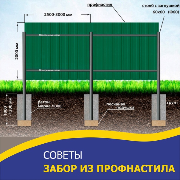 На хорошо защищенных, например, лесом, от воздействия ветра участках можно столбы ставить пореже, но все равно не превышая максимального расстояния — трех метров.