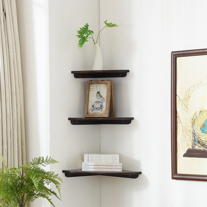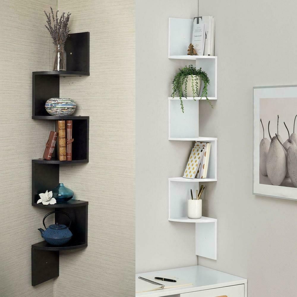 Полочки возьмут на себя большую часть мелочевки, которая могла бы храниться в комодах и стеллажах. Например, полка угловая способна уместить достаточно тяжелые предметы, вроде керамических или металлических фигурок. Также там можно хранить некоторую технику, вроде робота пылесоса.