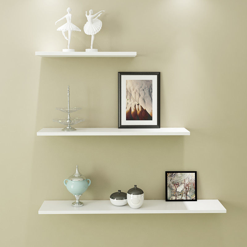 При желании вы даже можете сделать полки разной длины в зависимости от того, что вы собираетесь с ними делать. Их можно расположить в шахматном порядке или повесить в ряд. Мне очень нравится эта планировка , у которой верхняя полка меньшего размера, что позволяет повесить картину на стену.