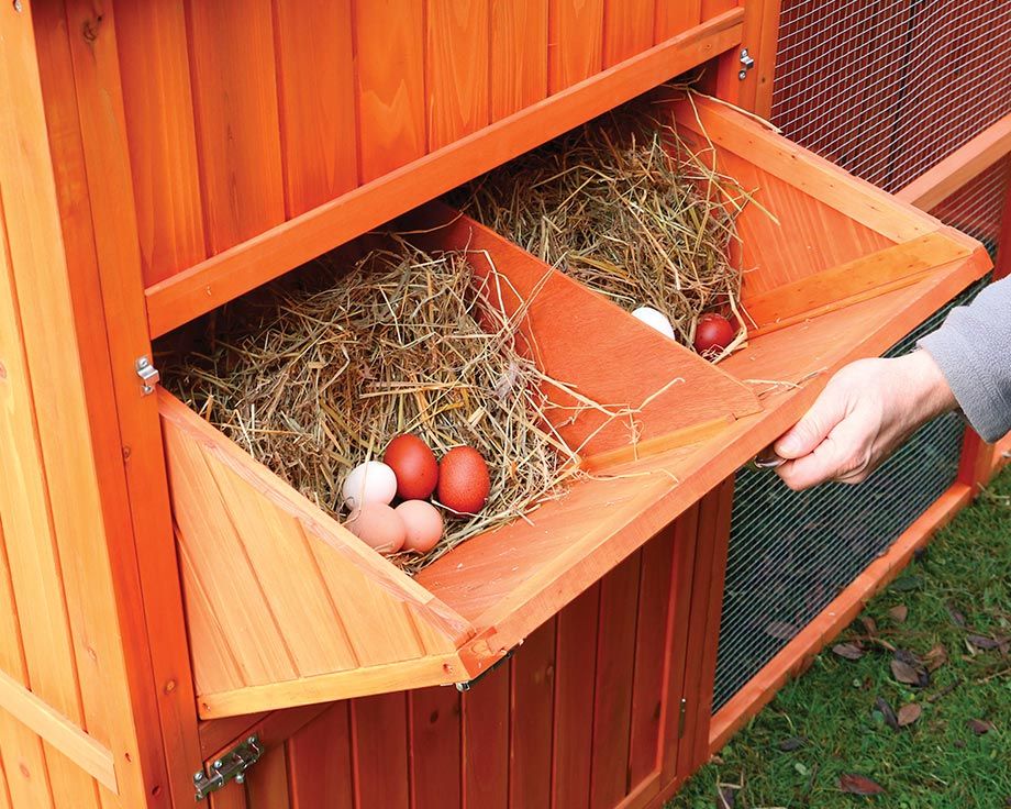 Сторона опускания опускается ровно настолько, чтобы собрать яйца и заполнить кормушку.