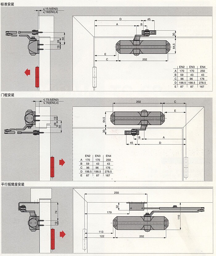 При несоответствии двух обязательных параметров одному классу, выбирается устройства более высокой классификации. Например, ширина дверной створки в мм соответствует классу EN3, а вес — EN5, рекомендуется установка доводчика 5 класса, так как более слабое усилие 3 класса не справится с нагрузкой.
