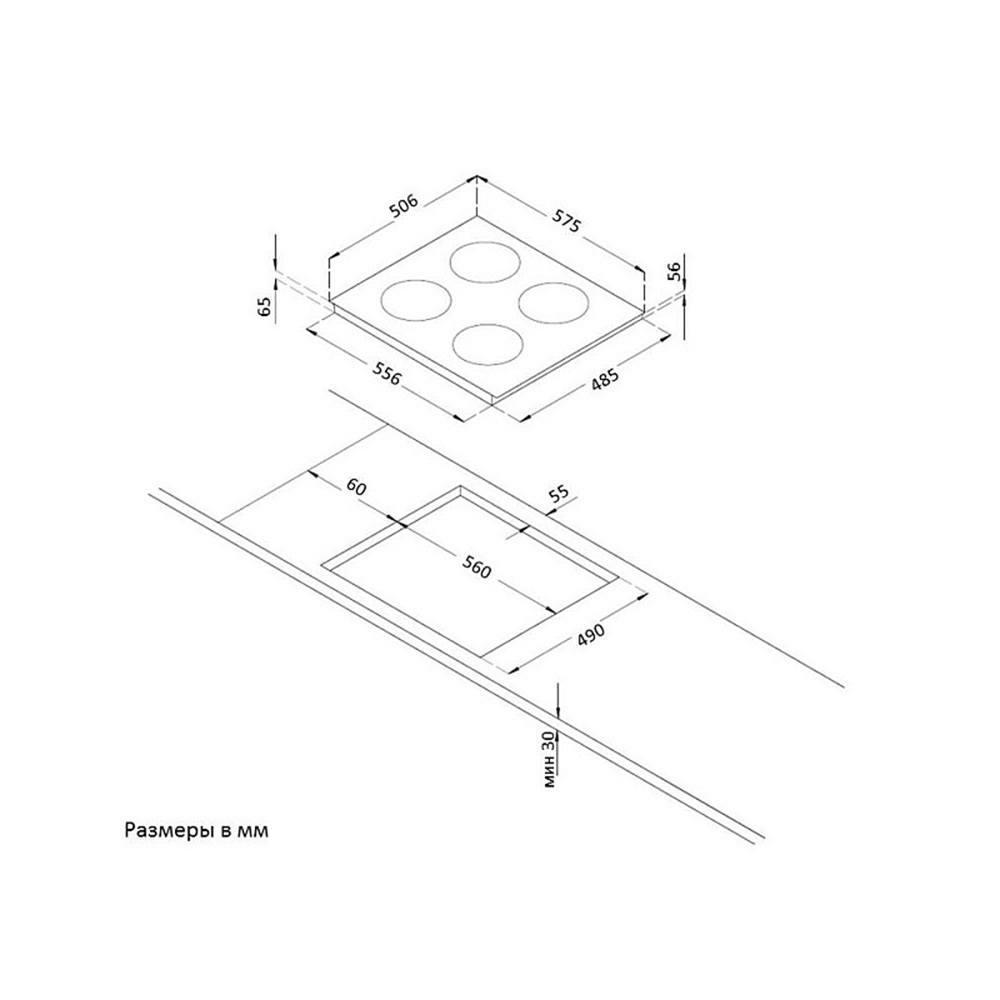 Стандартная глубина плиты обычно равна 550 мм, но есть модели и с другими параметрами. Плиты с эмалированной поверхностью имеют спиральные или сплошные конфорки. Некоторые электрические панели оснащены специальным датчиком, отключающим конфорки, когда те дойдут до определенной температуры. Так, расходуется меньше энергии.