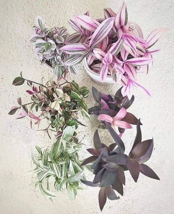 Т. Zebrina quadricolor имеет зеленый, серебристый, розовый и красный оттенок листвы, тогда как T. Zebrina purpusil представляет собой зеленую и фиолетовую цветовую гамму.