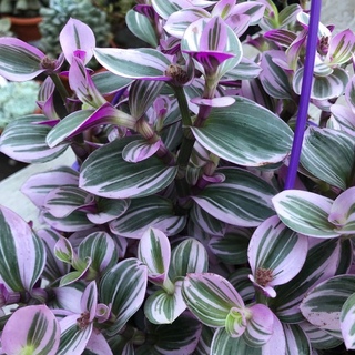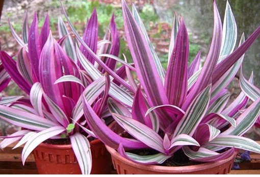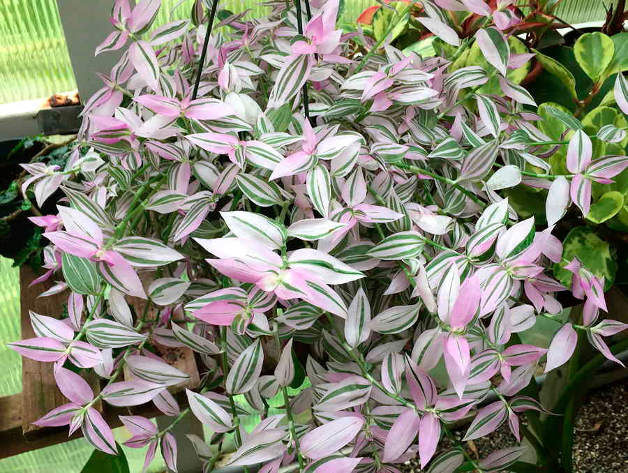 Secreasea Pallida ‘VARIEGATA’ — еще одно быстрорастущее комнатное растение с насыпью и каскадным растением с длинными ланцетовидными листьями с розовыми и фиолетовыми полосами.