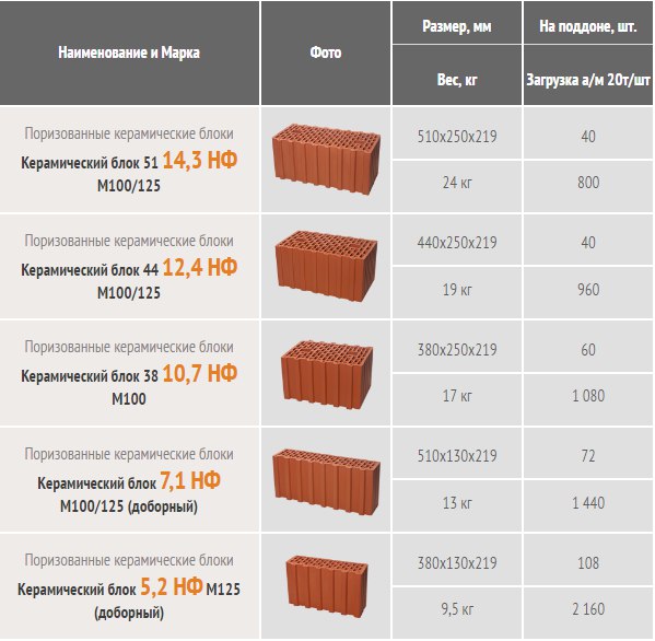 Для справки ниже приводится информация о том, какова масса одного кирпичного блока.