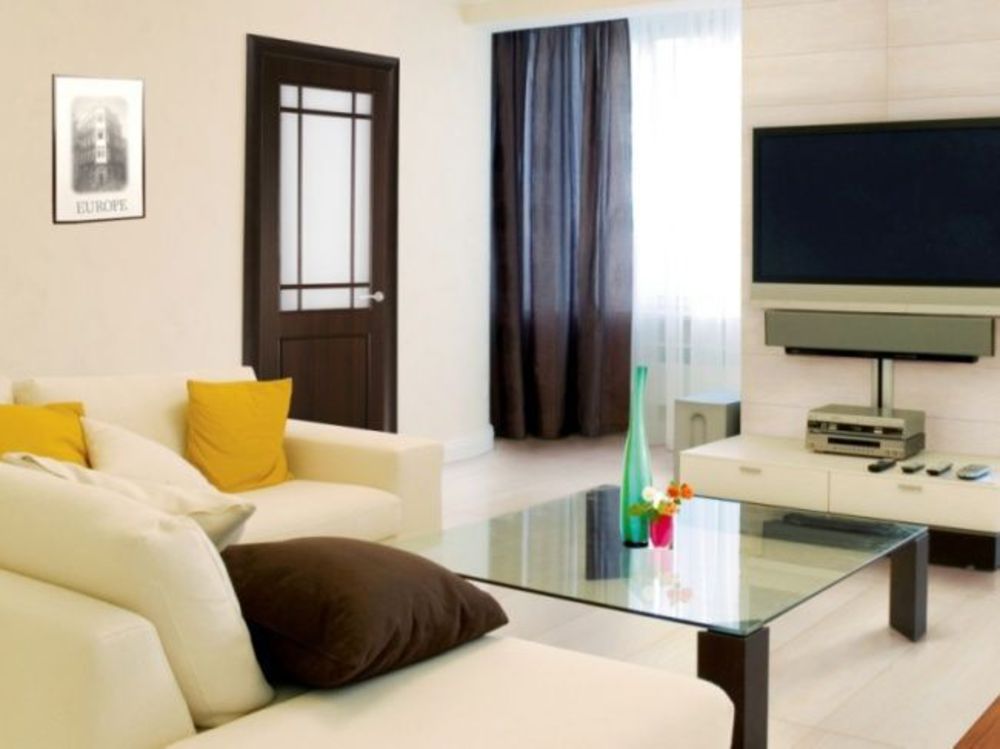 В спальне на дверном полотне нежелательны стеклянные элементы – они пропускают свет и могут помешать отдыху. А вот в гостиной уместны любые двери.