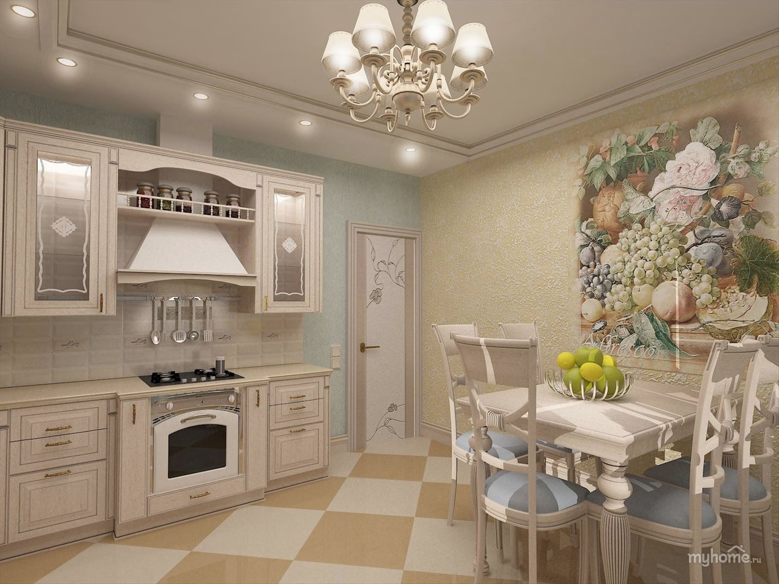 Прованская кухня светлая и просторная. Сочетать между собой натуральные пастельные тона и натуральные материалы — вот главная задача.