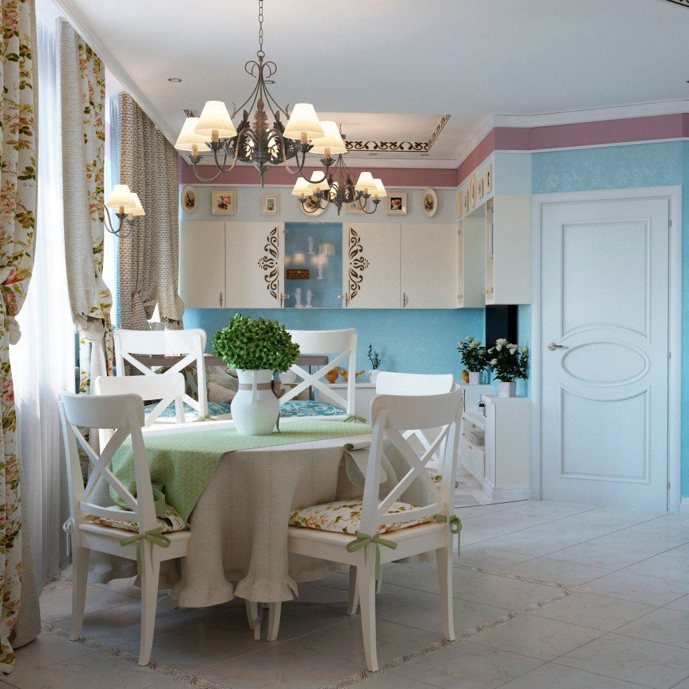 Стиль прованс используется везде, главное желание. Можно и в маленькой, и в большой комнате, не важно, квартира или дом. Главное условие — это совместимость хотя бы нескольких комнат, находящихся рядом.Это может быть кухня и столовая, или кухня с гостиной или прихожей, но лучше, если вы будете придерживаться этой темы во всем доме.