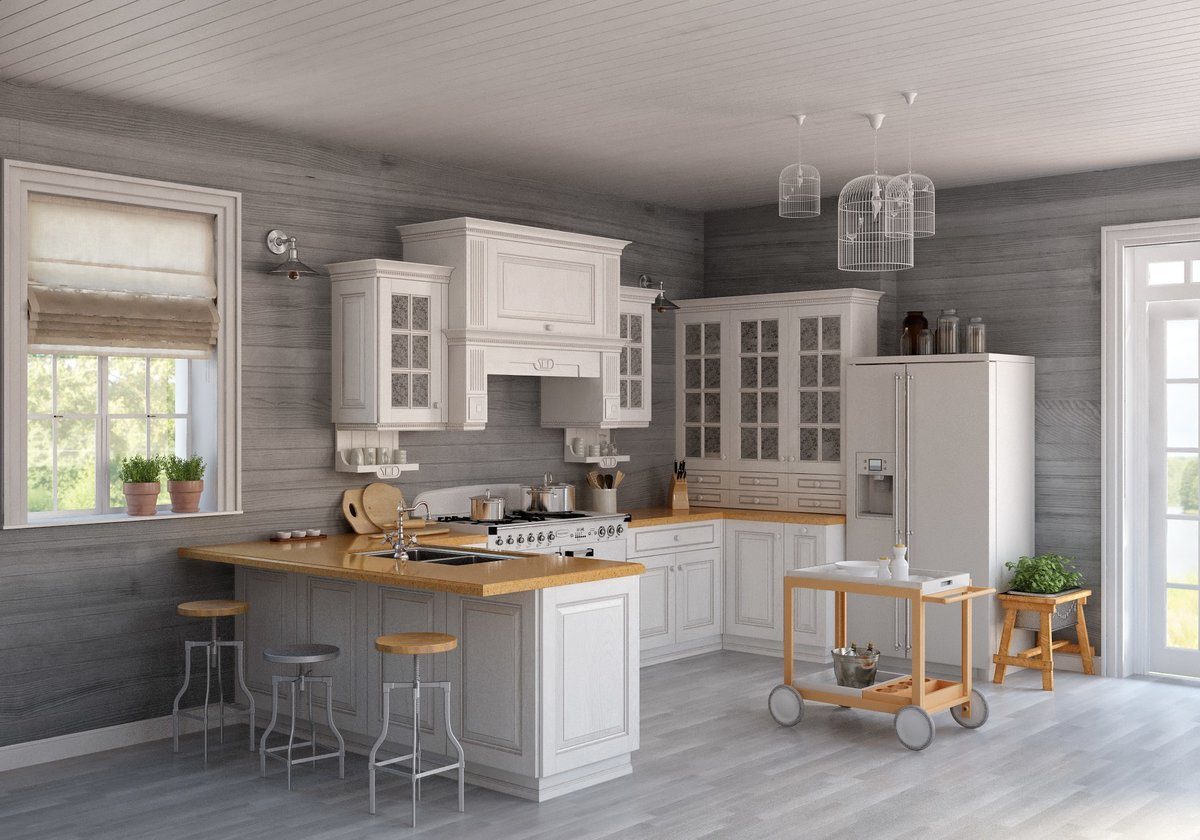 Этот стиль больше подходит для больших кухонь в просторных загородных домах, чем для маленьких в квартирах.