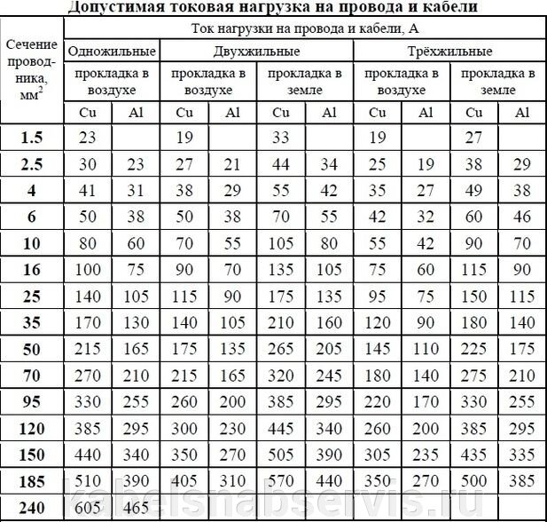 Первоочередным параметром для выбора сечения кабеля (провода) является ток нагрузки.