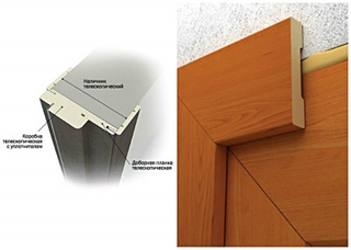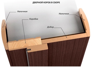 При этом, имеется возможность регулировки глубины посадки, если того требует ширина стен в проеме. При монтаже для большей прочности соединения используется клей. Если используются доборы, то для телескопических наличников выбираются изделия со специальными пазами.