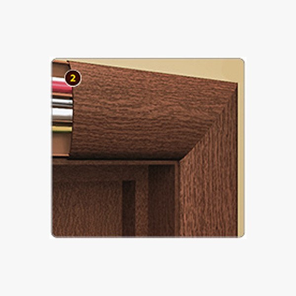 Для отделки используются такие же ламинат и шпон, как и для всей одноименной конструкции из МДФ или ДСП.