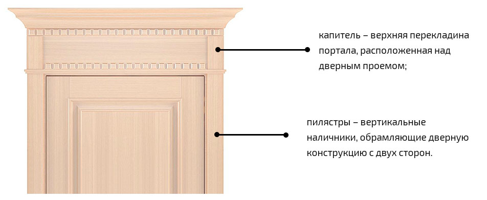 Две планки, которые идут по обе стороны от двери, называются «пилястрами», а верхняя часть называется «перемычкой».