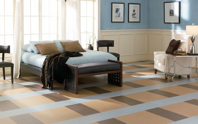 Специфика производства линолеума позволяет наносить на его поверхность любые декоративные узоры. Чаще всего это имитация паркета, плитки, камня и различных природных материалов. Также есть яркие однотонные расцветки, абстракции и геометрические узоры.