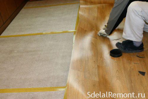 То же самое касается и длины. Если комната больше 5 метров, следует купить два куска и соединить их с помощью специального клея в единое полотно. Стыка при этом почти не будет видно.
