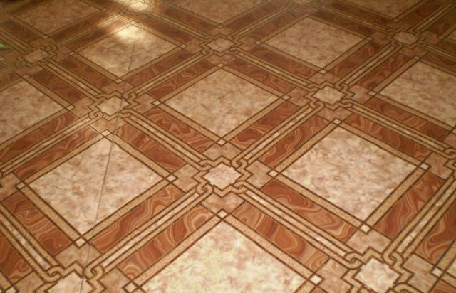 Разнообразие декоративного рисунка, также можно отнести к преимуществам этого материала. Дело в том, что ПВХ линолеум отлично подходит для имитации других видов поверхностей, таких как: мрамор, паркет, плитка и др.