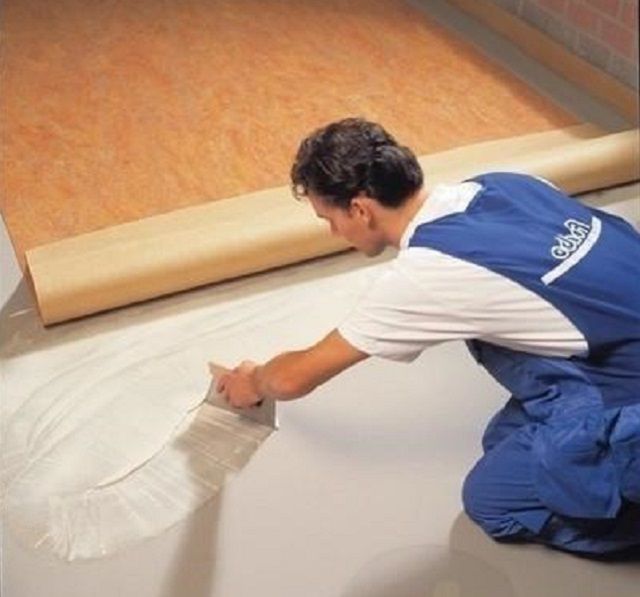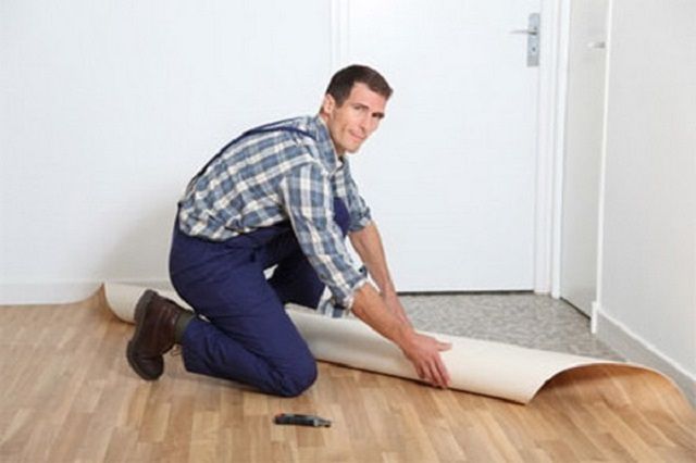 Устанавливать линолеум проще всего как минимум вдвоем.