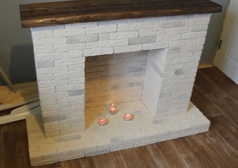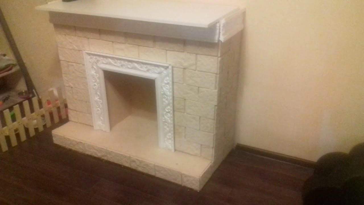 Если хотите сделать стандартный камин, можно использовать пенопластовые кирпичи, так же как и в случае с рождественским очагом. Помним, что искусственные камни можно наклеить не только с внешней стороны, но и внутри, где обычно горит пламя.