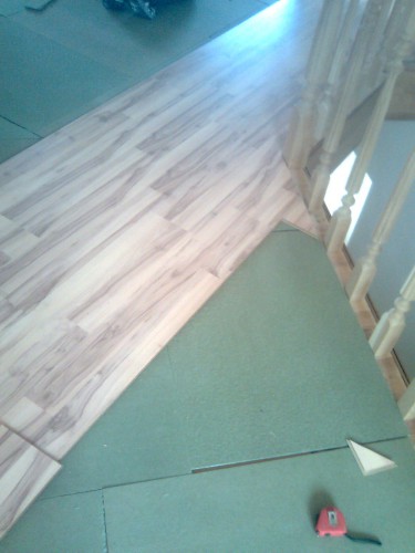 Укладка подложки выполняется параллельно с укладкой ламината, чтобы избежать деформации покрытия при производстве работ. Подложка в рулонах раскатывается по длине помещения. Отдельные полосы соединяются встык и заклеиваются скотчем.
